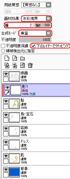 髪塗りはいまだに安定しないというか、線画のたびに塗り方が変わるので、絶対にメイキングなんてしないわ!って思ってたんですが、そういえばSAIの髪塗りはいまやほとんど同じ工程で塗ってるなと思ったので、SAIでの塗り方だけ。