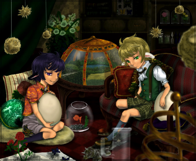 今回の塗り絵は説明しなくても汲み取ってもらえる背景設定を目標にしてみたんですが、多分説明しないと全然わからない仕上がりになりました。あは。