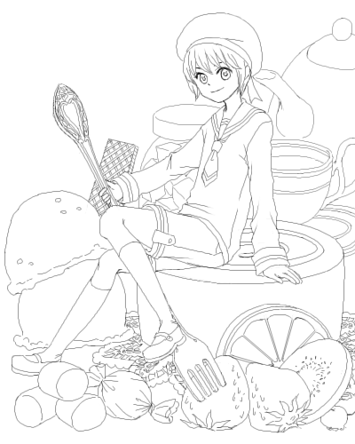 さらっと塗り絵したいなぁと思ったのでのこさんの線画を検索かけ(なにその自然な流れ)、あんまりさらっと塗れなそうだなぁと思いつつ、背景はごまかしが効きそうだし、何よりキャラや世界観が魅力的だわ!と思って選んでみました。