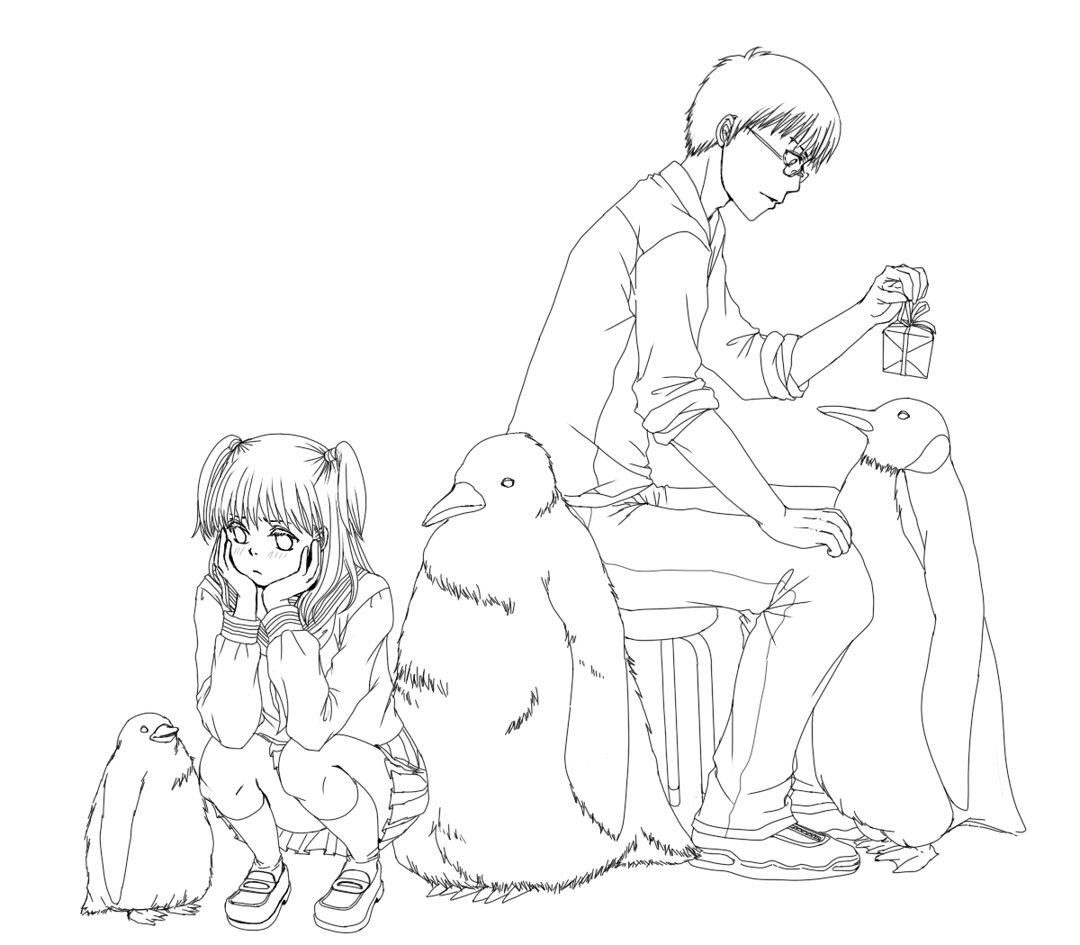 ペンギン飼育員と女子高生の年の差恋愛というどうでもいい余計なサブテーマをくっつけて描きました。おバカ!^p^