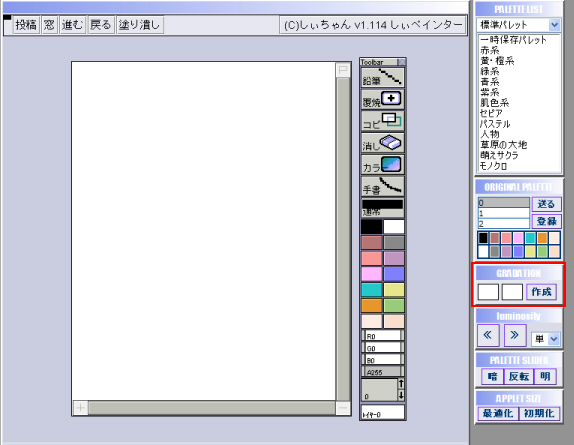 オエキョさんTOPの「お絵かき説明書」で説明されてるかと思ったら動的パレットについて触れてなかったのでやってみました。
