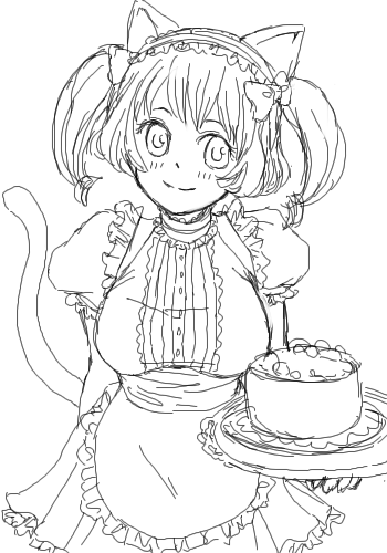 なんか自分が前に描いたメイド服の線画と代わり映えしないなぁとか…。まあメイドさんの魅せ方として考えれば私的にはとてもおいしい角度なんですけどw