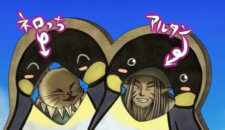 ピクファンに投稿していたマイキャラ(?)、ギガンダルペンギンと写真が撮れちゃうテンプレを作ってみた。