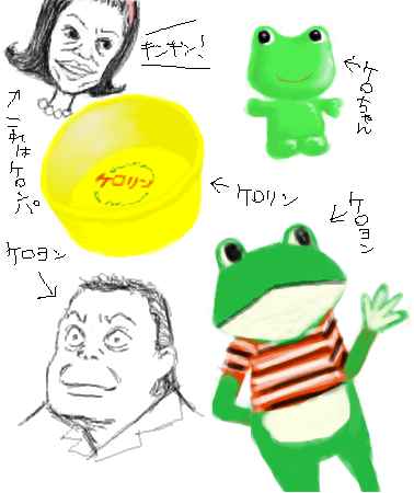 昨日はケロケロさんの所のオエビで絵を描き、そしてケロヨンさんのカレーパンを盗む画策を立てたり…ケロにまみれた日だったな~。