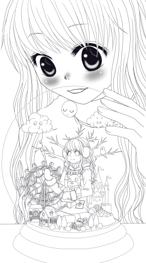 オエキョさん投稿のスノードーム線画を自分で塗ろうと思って、SAIで線画を起こし直しました。