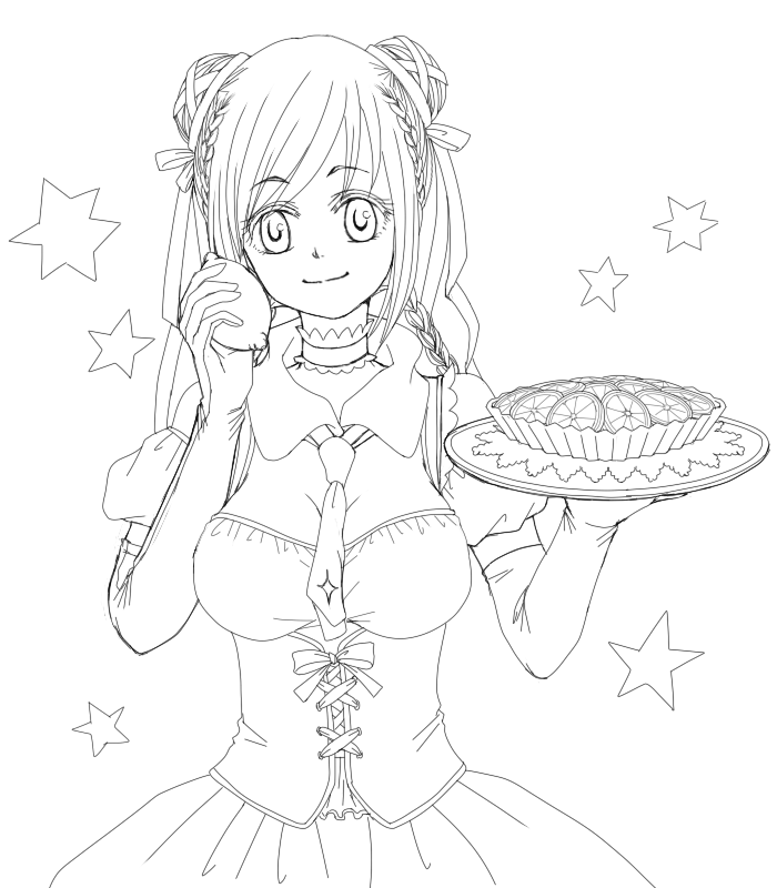 なんかたまたま描いてた線画にレモンパイを加筆してみました^p^