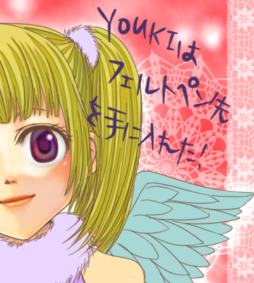 前に私がmashuさんとDさんで答えたお友達紹介バトンをケロヨンさんが拾ってくれたんですが、私がmashuさんのイメージ画描いたので、絵が必要だと思ったケロヨンさんが描いてくれた、YOUKIのイメージ図なのです。
