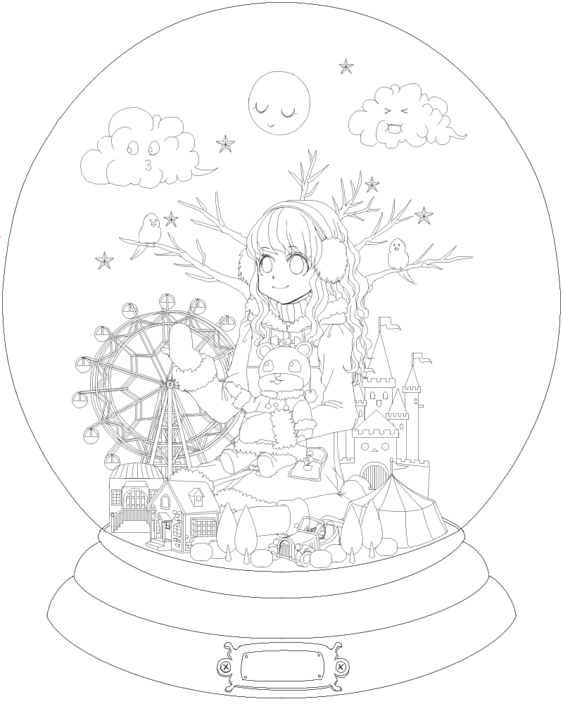 ハロウィンではなくスノードーム線画が!(おい!)