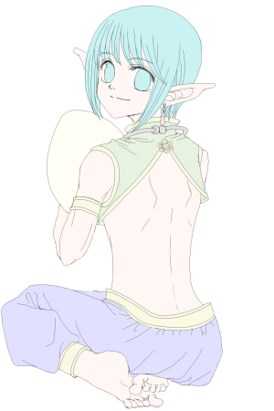 あと腰飾りと服の模様と羽を描くです。